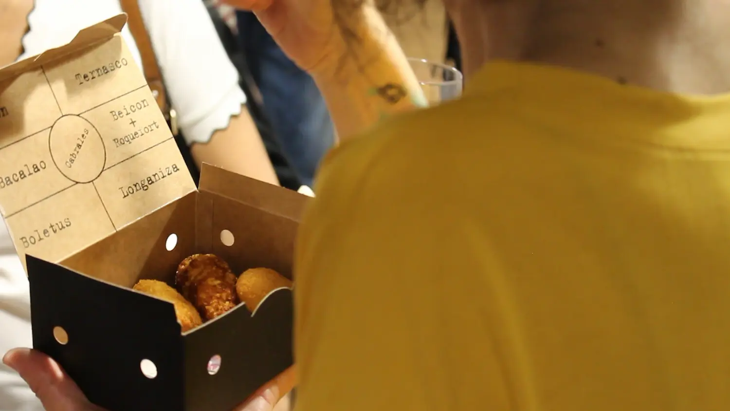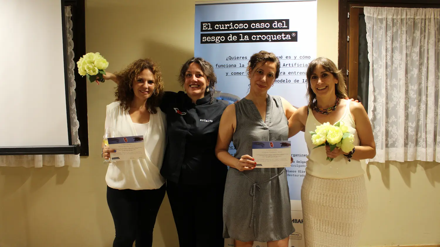 Y como no! Después de charlar un poco acerca del proyecto, sesgos, IA, IE… Pasamos a repartir las cajas negras con los 6 sabores de croquetas de el entalto, así que, como en la 1ª ingesta, cada participante, mediante un formulario al que se accedía mediante un QR, asoció una emoción básica a cada sabor. Con estos resultados seguiríamos entrenando al modelo de IA.
