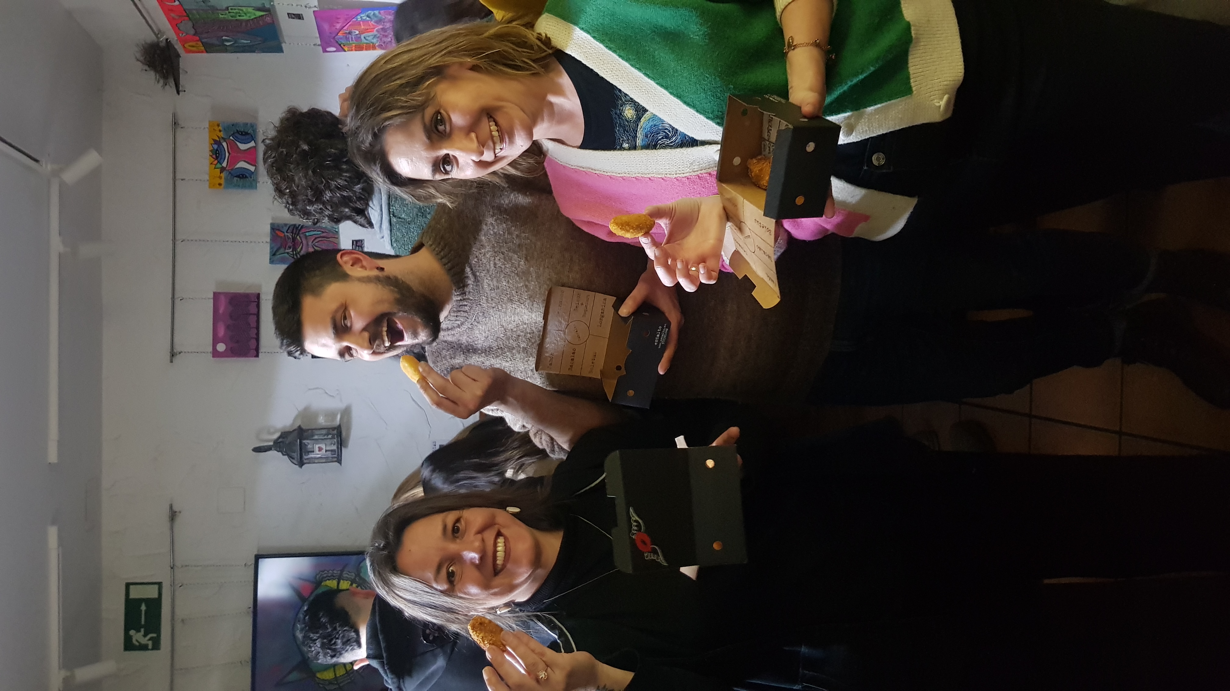 Después de explicar y desarrollar la parte teórica del proyecto llegó el momento más deseado. Habíamos preparado unas cajas negras en las cuales cada persona participante encontraría los 6 sabores de croquetas de el entalto… Pero aún no se podían comer!!
